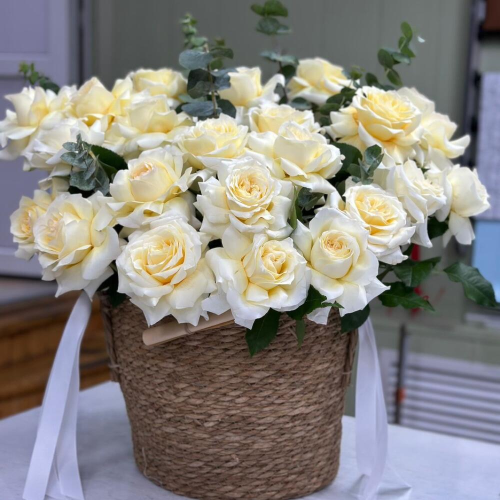 Кашпо с 25 с французскими розами