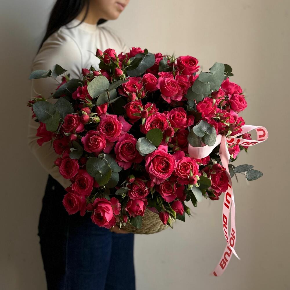 Эвкалипт - 2 шт. кустовые розы - 14 шт.