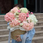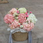 Гортензия - 7 шт. Ромашка - 3 шт. Гвоздика - 3 шт. Эустома - 3 шт. Кашпо - 1 шт.