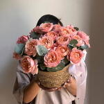 Композиция в кашпо с розами Джульетта. Идеальный выбор для создания уютной атмосферы. Основу составляют нежные розы Джульетта , которые гармонично сочетаются с веточками ароматного эвкалипта.