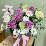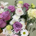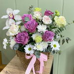Хризантема кустовая - 2 шт. Эустома - 2 шт. Эвкалипт Микс - 1 шт. Орхидеи Дендробиум - 2 шт. розы - 5 шт.