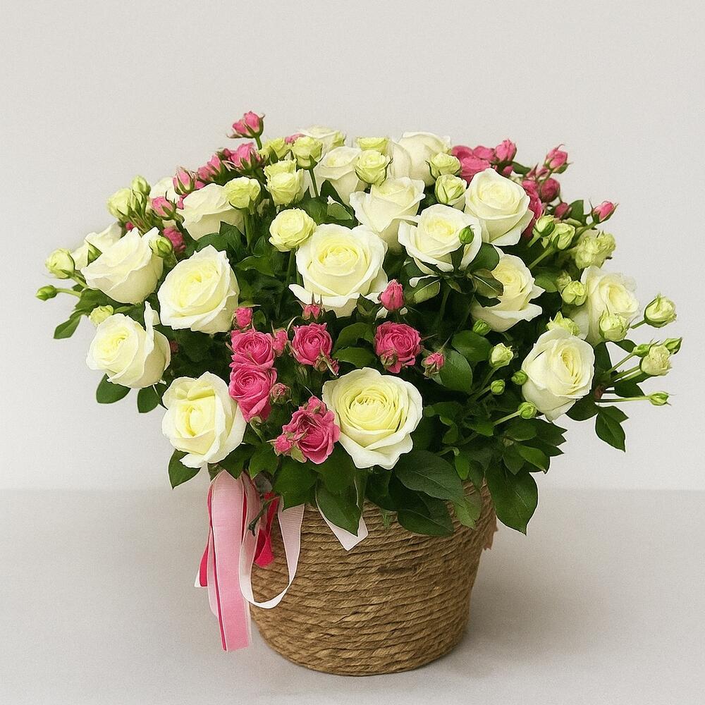 белая кустовая роза - 4 шт. Роза белая 50 см - 25 шт. кустовая роза софия - 3 шт.