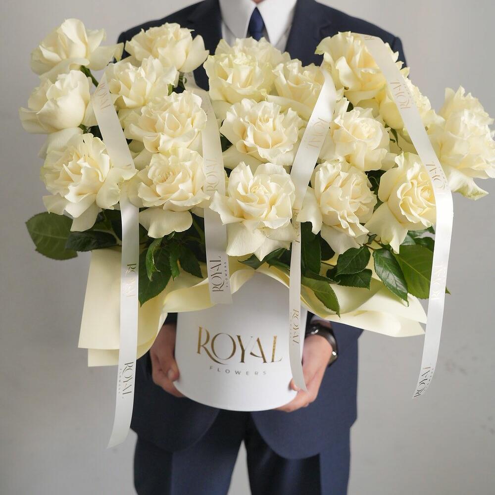 Стильный, лаконичный, но при этом невероятно выразительный. Этот цветочный бокс из белых роз — воплощение классической красоты и утончённости.