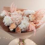Гортензия - 2 шт. Гвоздика - 5 шт. Хризантема одноголовая - 6 шт. Оформление - 1 шт. лист папоротника - 2 шт.