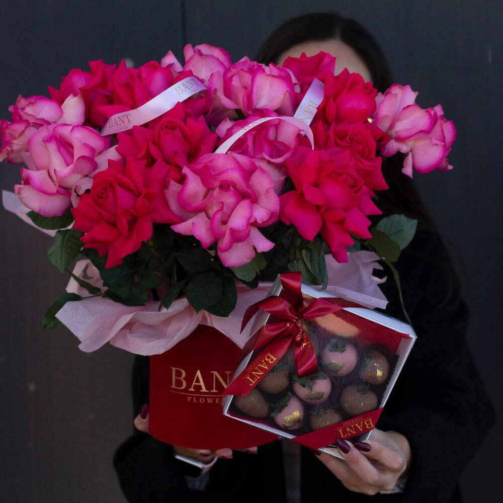 Комбо: 15 Ажурных роз в боксе + 9шт клубники в шоколаде