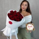 Комбо 15 красных роз и бенто тортик Love