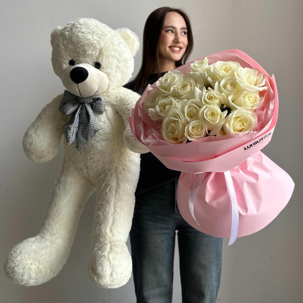 голландские розы - 15 шт. мишка 80 см - 1 шт.