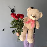 Мишка 80 см + красная Роза 60 см (5шт)