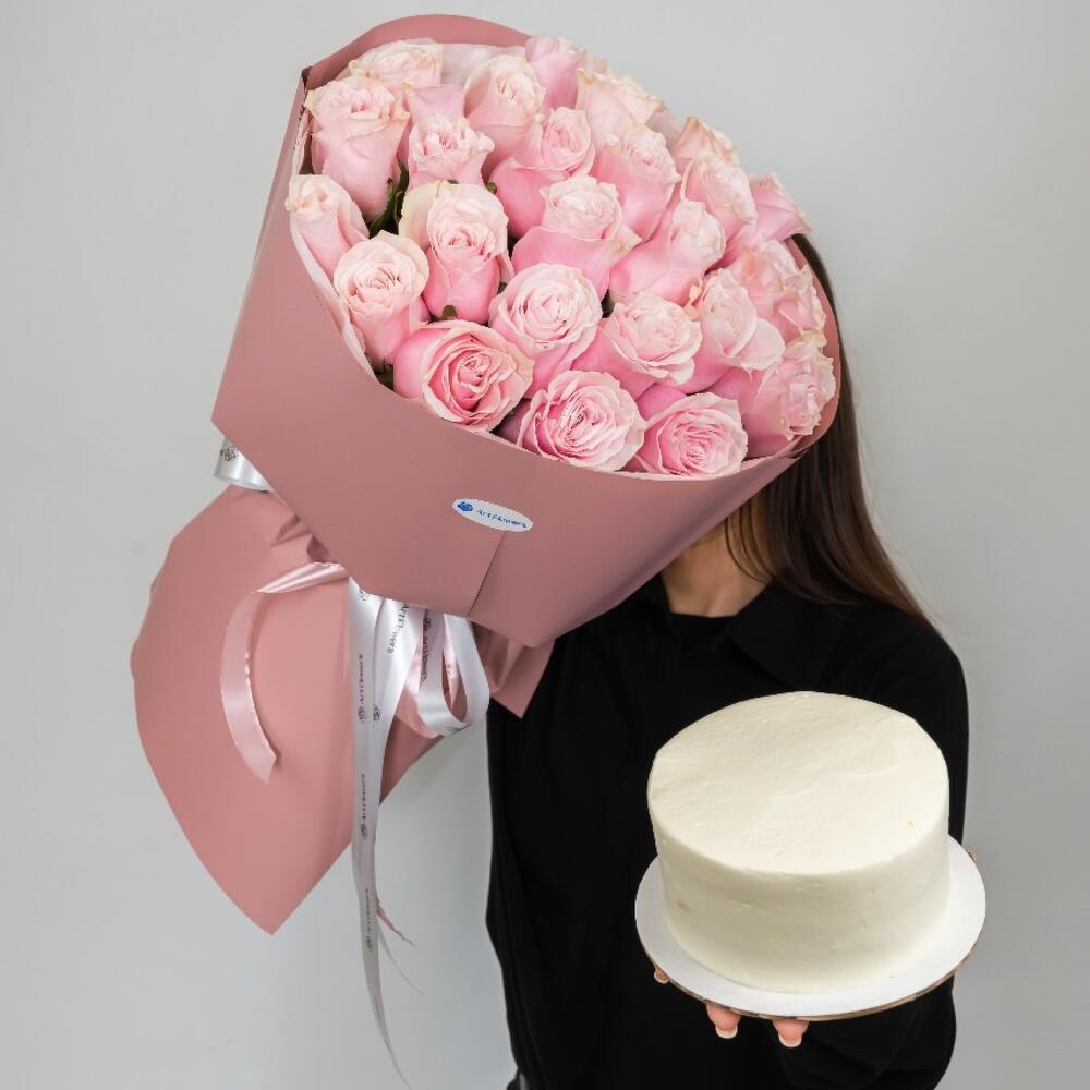 голландские розы 50 см - 25 шт. бенто торт молочная девочка 250 г - 1 шт.