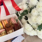 Комбо Букет Хризантем и Бокс Макаронс