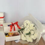 Подарочный набор, сочетающий нежность и эстетику. Яркие хризантемы создают свежий, праздничный акцент, а бокс с изысканными макаронс добавляет сладости и настроения. Идеальный вариант для сюрприза, поздравления или просто тёплого жеста внимания.