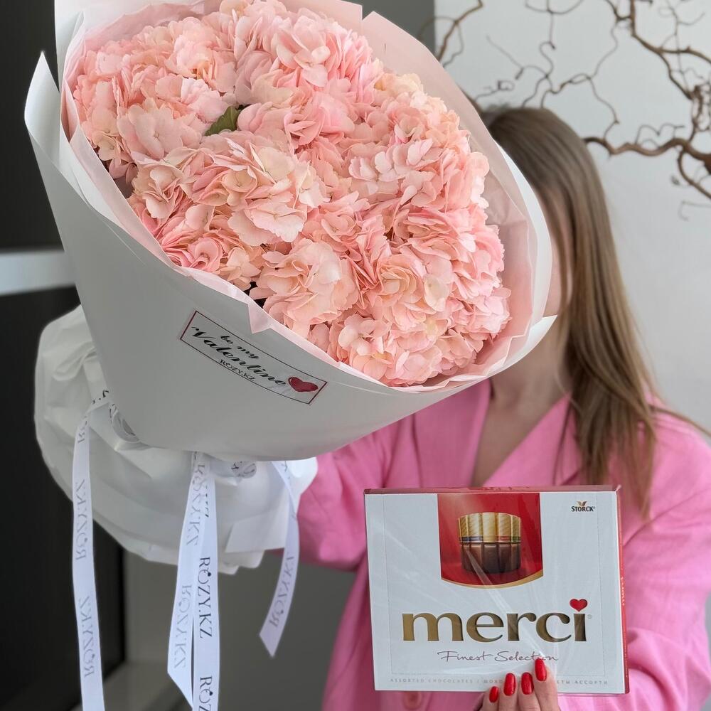 Гортензия - 5 шт. Мерси шоколад - 1 шт.