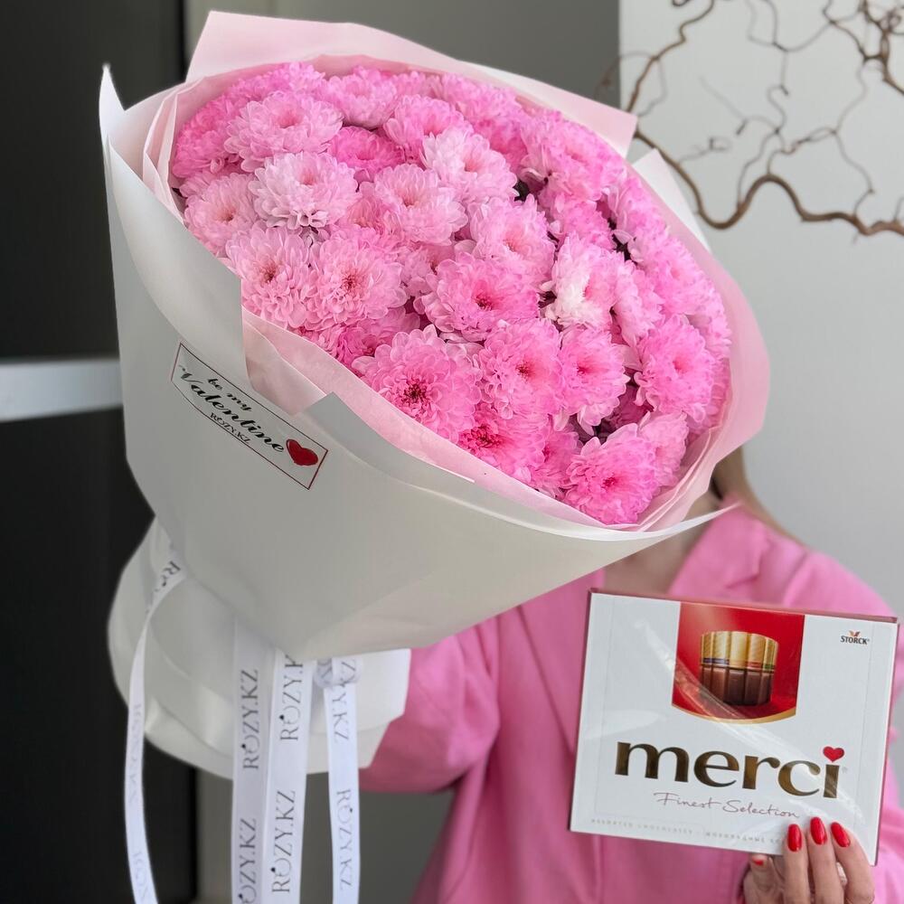 Хризантема кустовая - 9 шт. Мерси шоколад - 1 шт.
