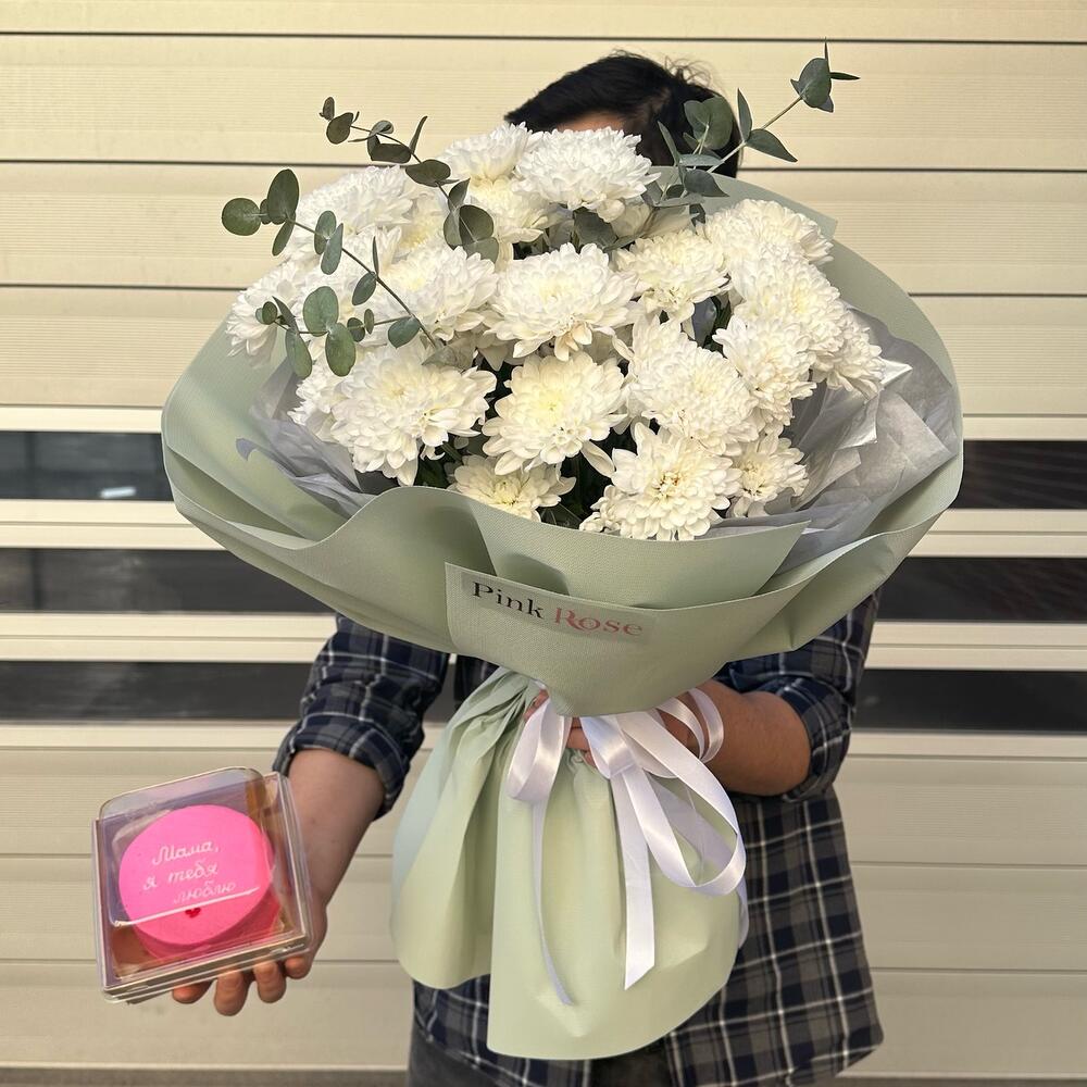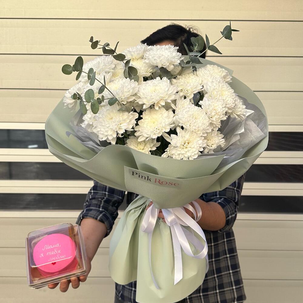 Нежный букет стойких хризантем + вкусный молочный бенто торт с вашим дизайном