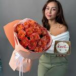 Комбо из 15 пионовидных оранжевых роз и бенто тортика «Love»