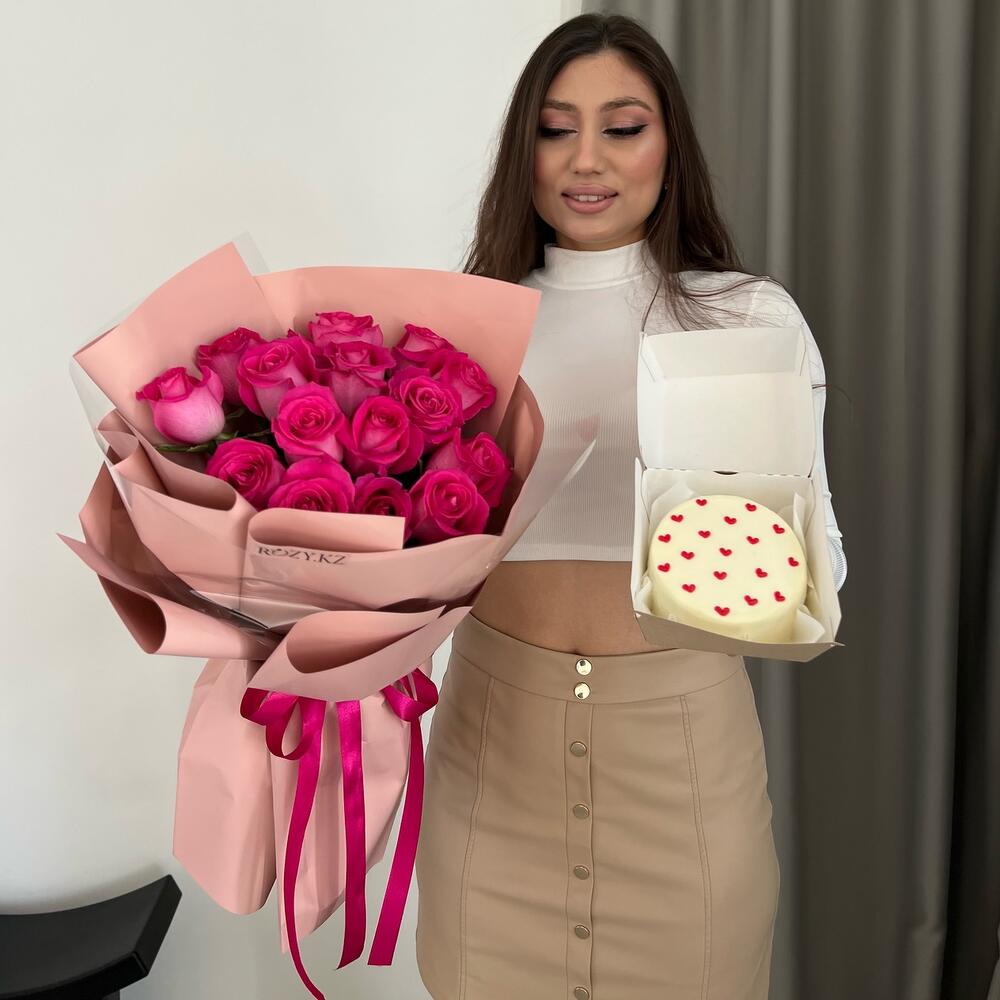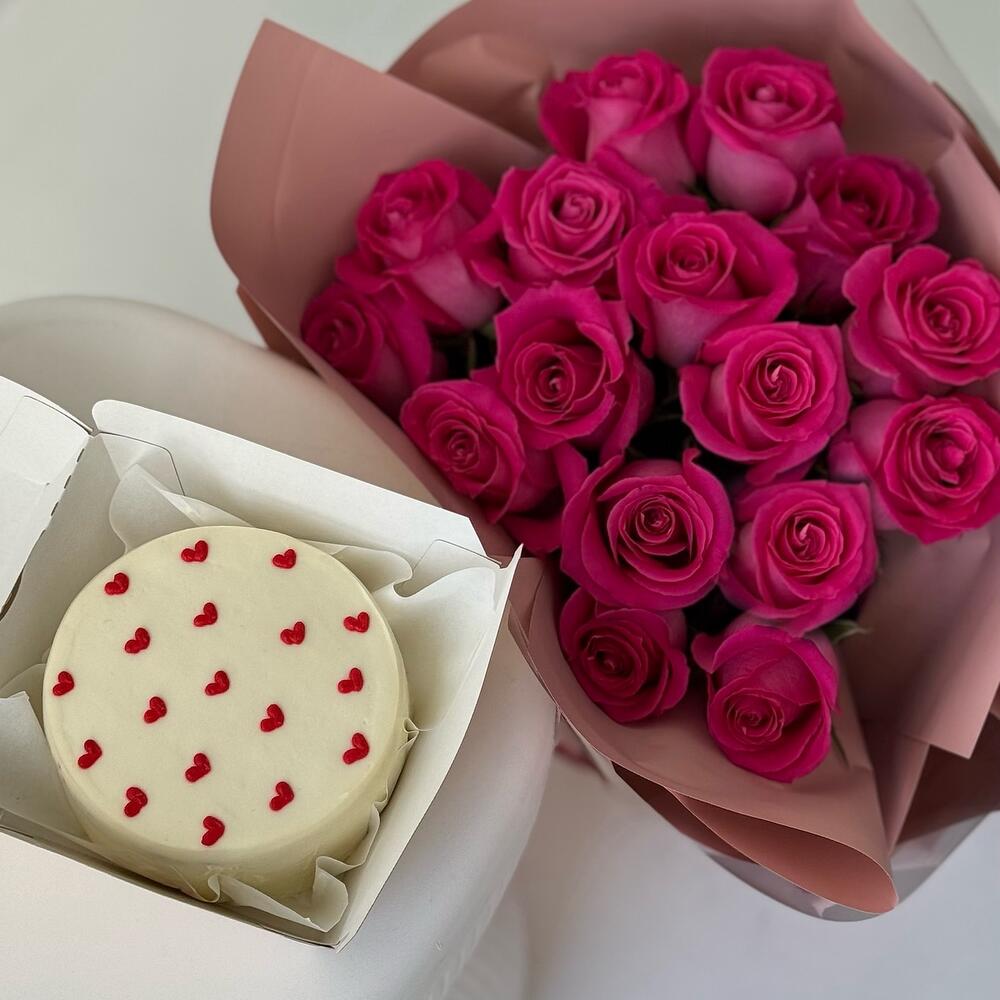 Роза - 15 шт. бенто торт - 1 шт.