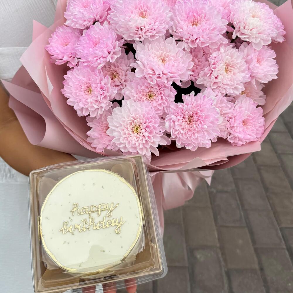 Хризантема кустовая - 7 шт. Упаковка дизайнерская - 5 шт. бенто торт вупипай - 400 гр.