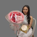 Розовые пионовидные розы, гортензия и бенто-торт создают гармоничную и стильную композицию. Пышные цветы выглядят роскошно, а сладкое дополнение делает подарок ещё более особенным. Это идеальный вариант для тех, кто любит красивые и нестандартные решения. Композиция создаёт атмосферу праздника и заботы. Отличный выбор для романтического вечера и 14 февраля.
