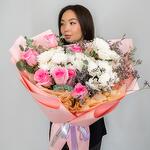 Лимониум - 3 шт. Эвкалипт - 2 шт. Хризантема - 6 шт. Роза 50 см - 10 шт. аква бумага - 2 шт.