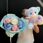 Упаковка дизайнерская - 7 шт. Гортензия микс - 5 шт. мишка радужный - 1 шт.