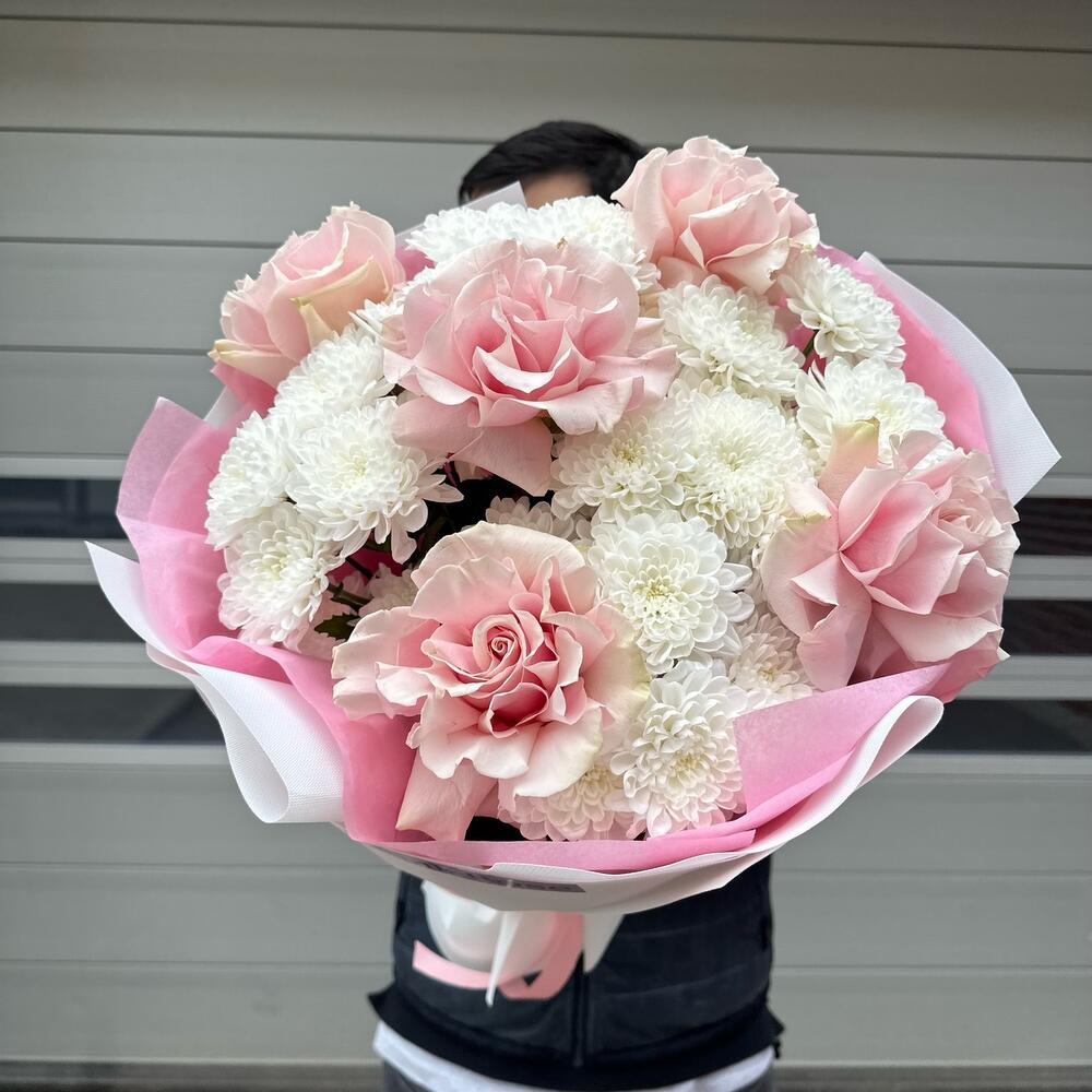 Хризантема кустовая - 5 шт. Роза - 5 шт.