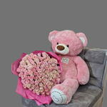 Этот букет создан, чтобы покорять с первого взгляда: 101 нежно-розовая роза и очаровательный плюшевый мишка. Подарок, который вызывает улыбку, восторг и ощущение настоящей любви. идеален для 14 февраля и дня рождения.