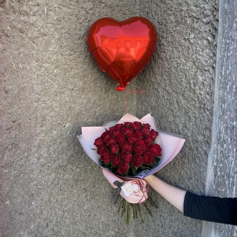 25 роз и шар в форме сердца — романтичный и тёплый подарок, который говорит о чувствах без слов.