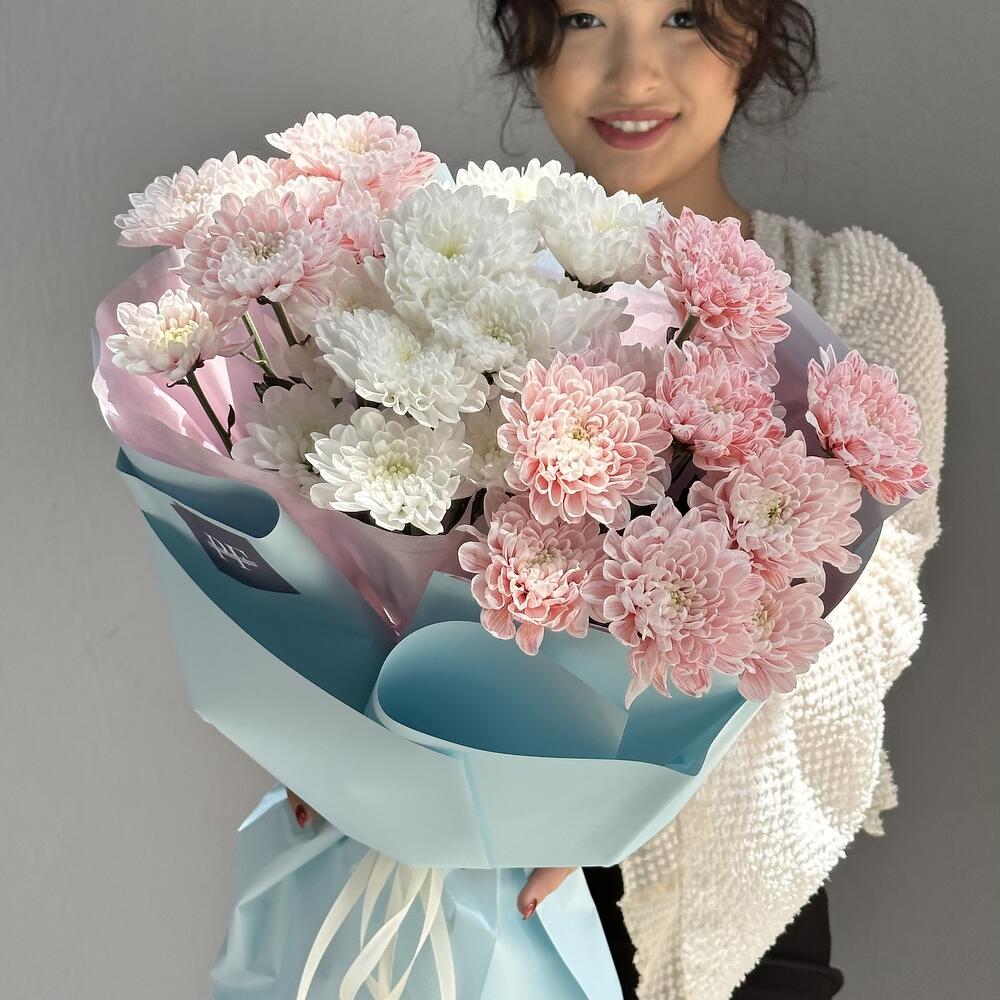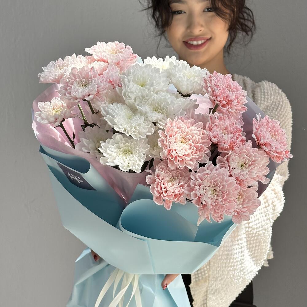 хризантемы кустовые - 5 шт. аквабумага - 4 шт.