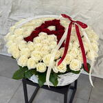Эта композиция создана для особенных чувств и знаковых моментов. 101 свежая роза, собранная в форму буквы «А», выглядит эффектно, символично и по-настоящему впечатляюще. Такой подарок говорит о внимании к деталям и индивидуальном подходе, подчёркивая уникальность человека, для которого он предназначен. Идеальный выбор, когда хочется удивить и оставить сильное эмоциональное впечатление