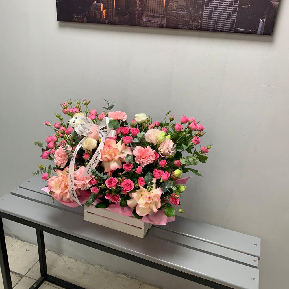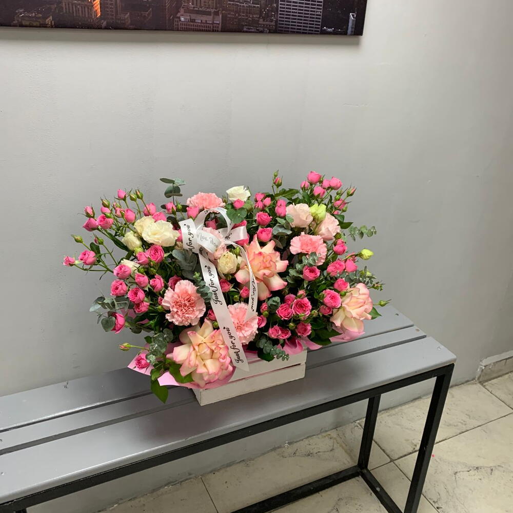 Композиция 158 🌷«Розовый рассвет» в ящике 🌿