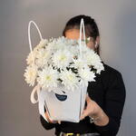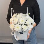 🤍 Букет-сумочка “Белая Легенда” 🤍 Четыре кустовые белые хризантемы 🌼 собраны в элегантную белую сумочку 👜. Лаконичный и нежный дизайн делает букет универсальным подарком — для радости, благодарности или приятного сюрприза ✨. Стильная простота, которая всегда уместна 💝