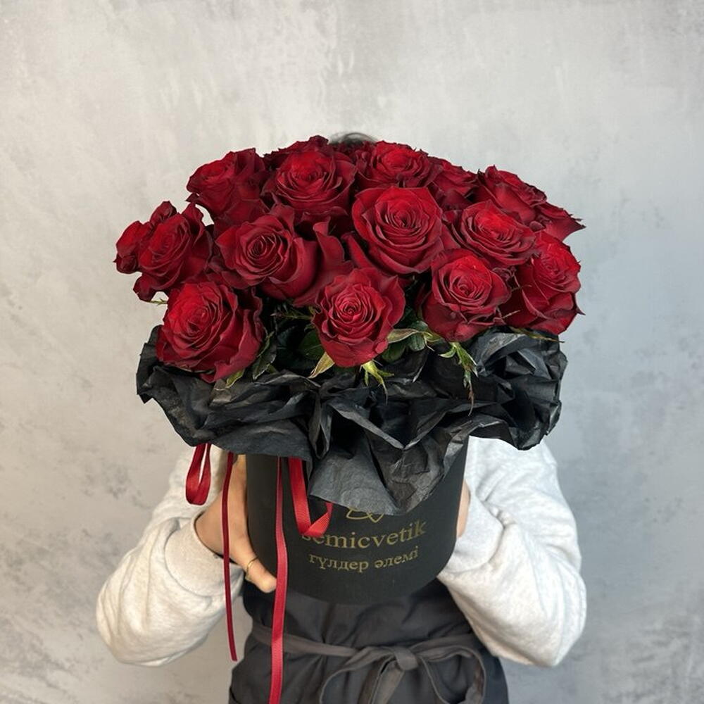 🌹 «Классика в чёрном» Композиция из 21 красной розы в лаконичной чёрной коробке — строгая, сдержанная и универсальная. Красные розы символизируют уважение, силу чувств и внимание, а чёрное оформление придаёт композиции аккуратный и благородный вид. Подойдёт как мужчине, так и для официального повода или памятного события. Без лишнего пафоса — просто красиво и достойно.