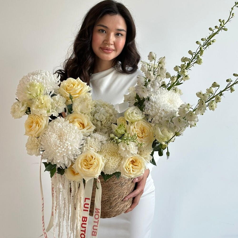 Воздушная и аккуратная композиция в пастельных оттенках. Идеально подходит для подарка маме, коллеге или любимой — выглядит дорого и очень трогательно. Создаёт атмосферу уюта и заботы