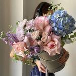 Гортензия - 1 шт. Маттиола - 3 шт. Хризантема кустовая - 1 шт. Голландская роза - 3 шт. Спрей роза - 1 шт.