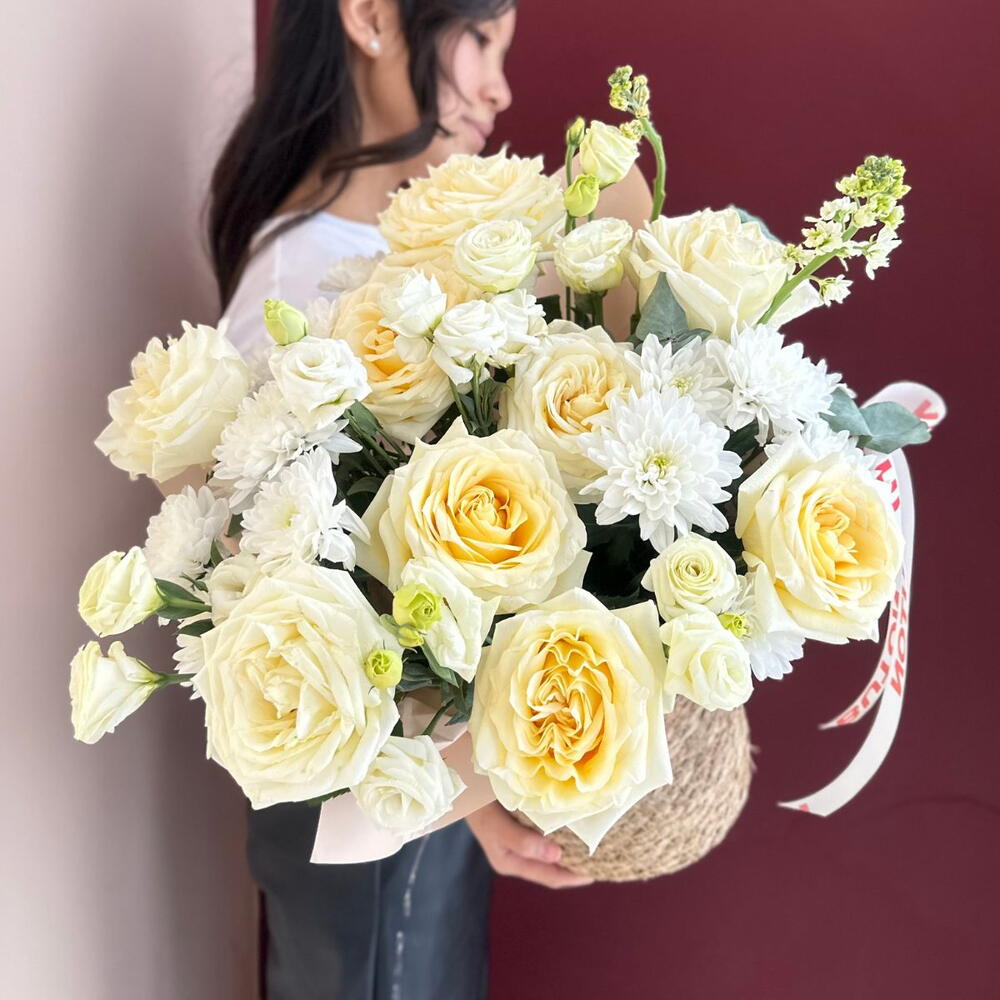 Цветы в этом букете подобраны так, чтобы создавать целостный и красивый образ, который радует взгляд и оставляет приятное впечатление