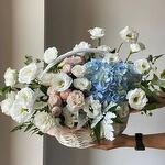 Гортензия - 1 шт. Рускус - 3 шт. Декор - 1 шт. лизиантусы - 5 шт. спрей розы - 2 шт.