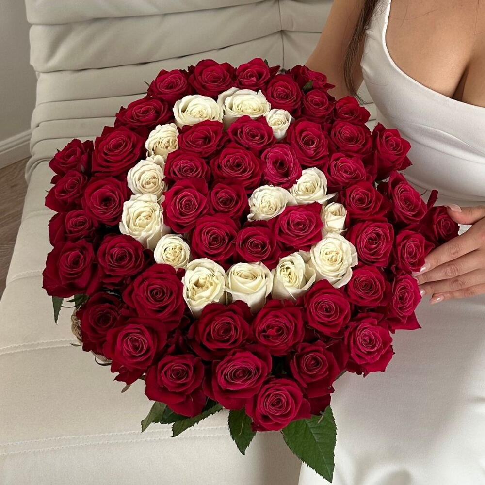 Яркая и впечатляющая корзина из красных и белых роз с буквой «G» в центре. Создана для того, чтобы вызвать искренние эмоции и сделать праздник по-настоящему незабываемым