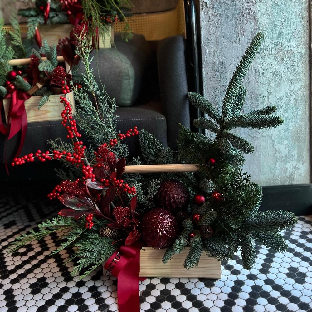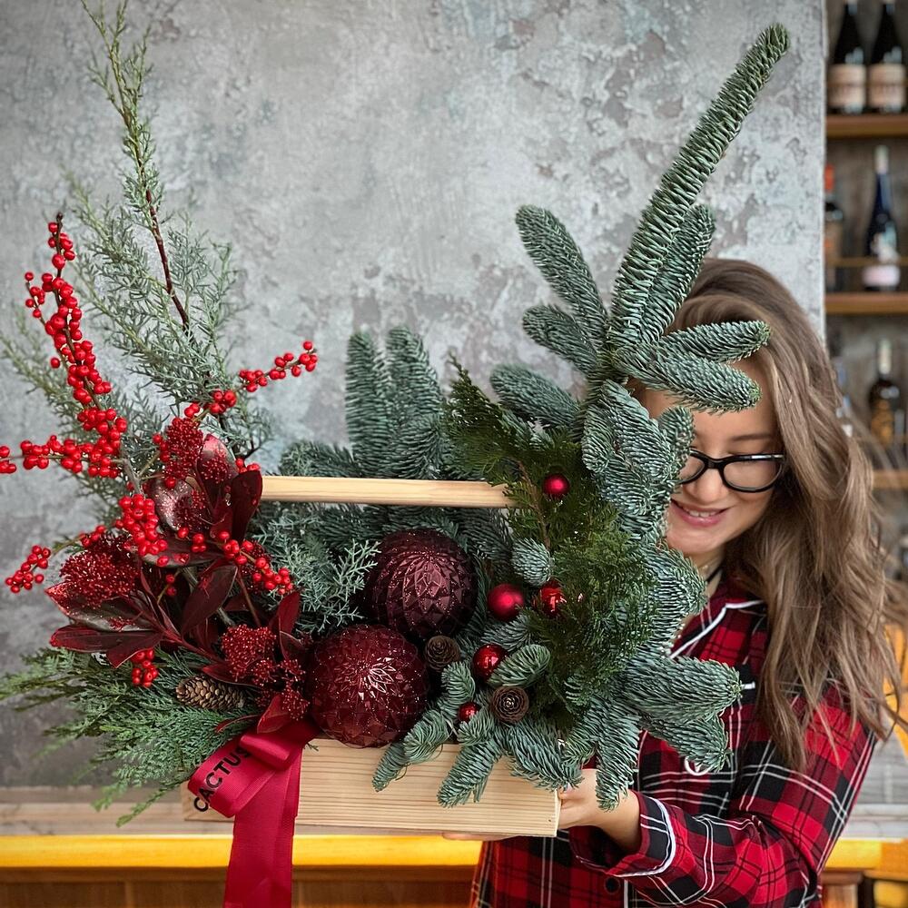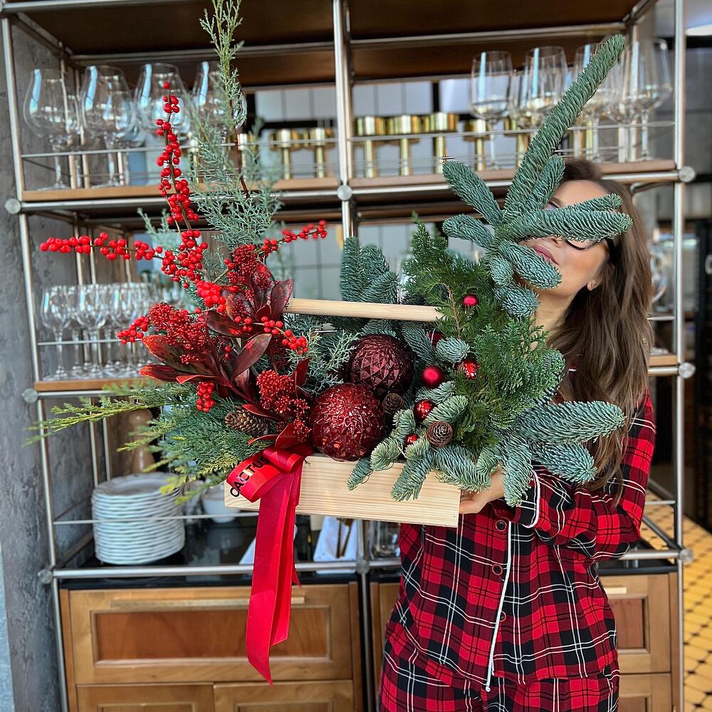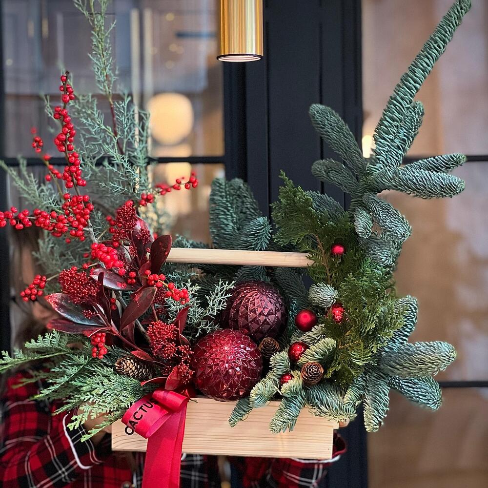 Илекс - 1 шт. Скиммия - 1 шт. Кипарис - 1 шт. Туя - 3 шт. Нобилис - 2 шт. Игрушки елочные - 9 шт.