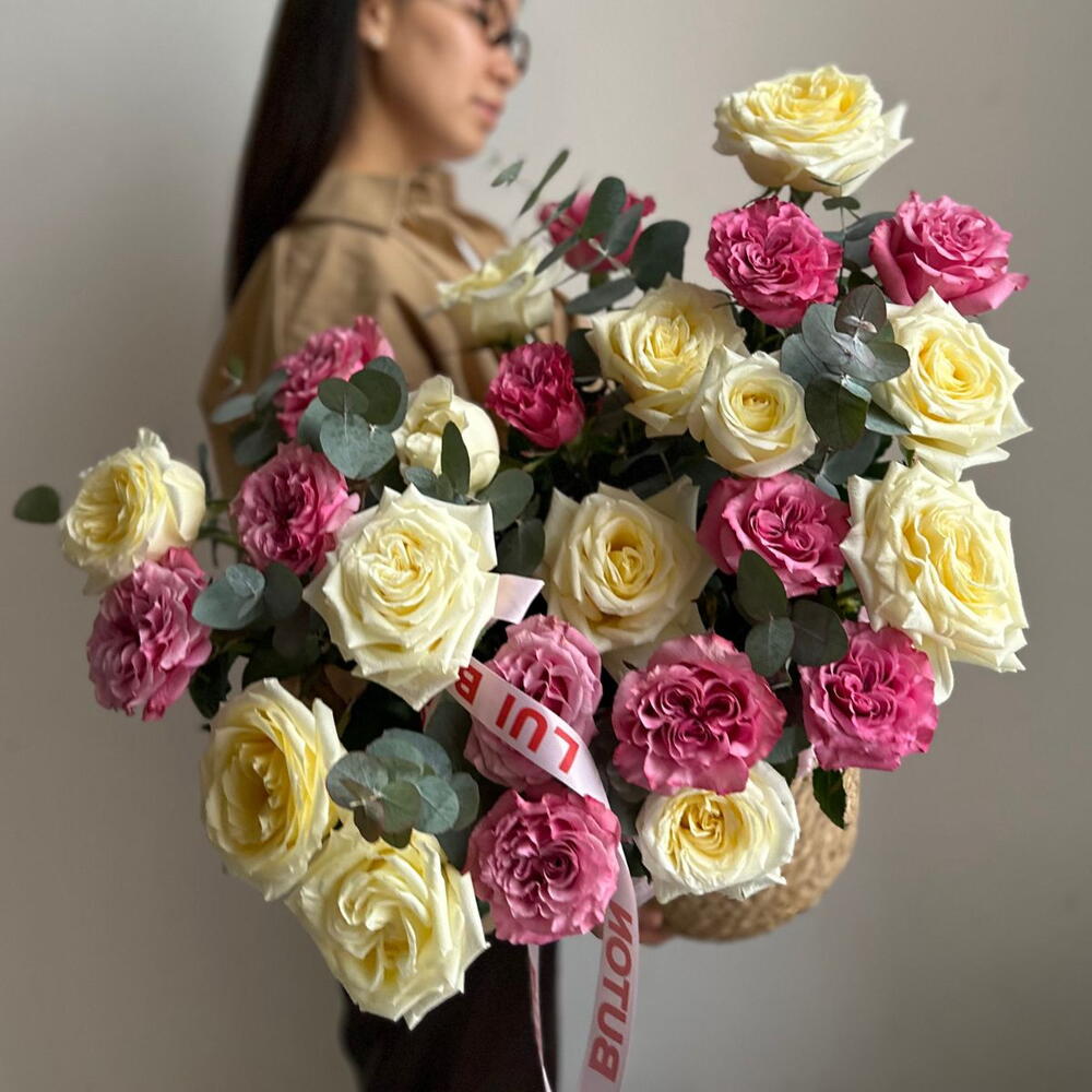 Эвкалипт - 4 шт. пионовидные розы - 25 шт.