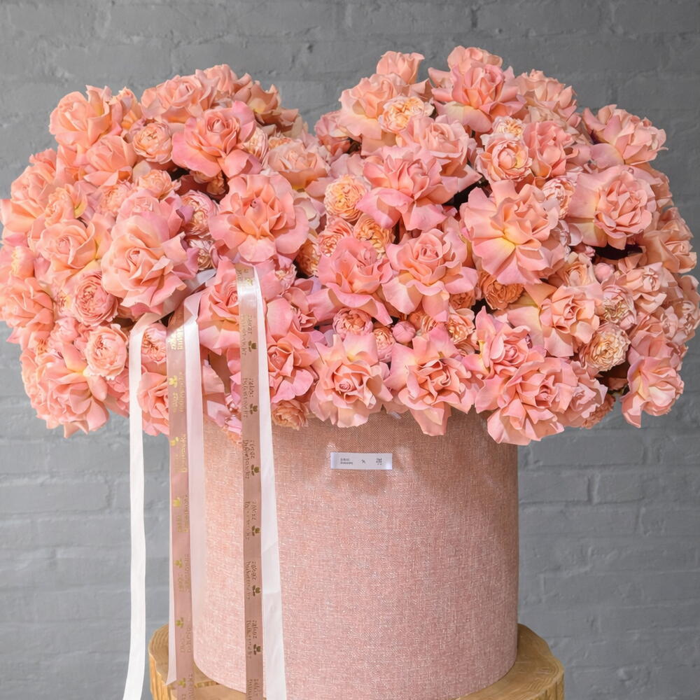 «Гигант любви» — впечатляющая композиция для по-настоящему большого чувства. 101 высокая голландская роза в сочетании с пионовидными спрей-розами создают мощный, роскошный объём, наполненный страстью, восхищением и любовью, о которой невозможно молчать.