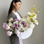 Маттиола - 2 шт. Хризантема - 5 шт. Эустома - 2 шт. онцидиум - 1 шт.