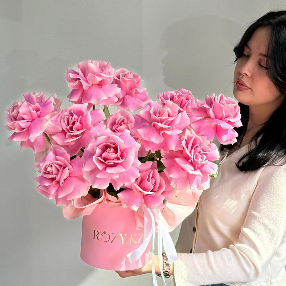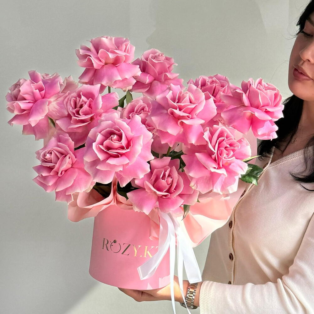 Роза - 13 шт. Коробка - 1 шт. Упаковка дизайнерская - 2 шт. Оазис флористический - 1 шт.