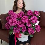 Роза фиолетовая - 25 шт. Оазис флористический - 1 шт. коробка для цветов - 1 шт.