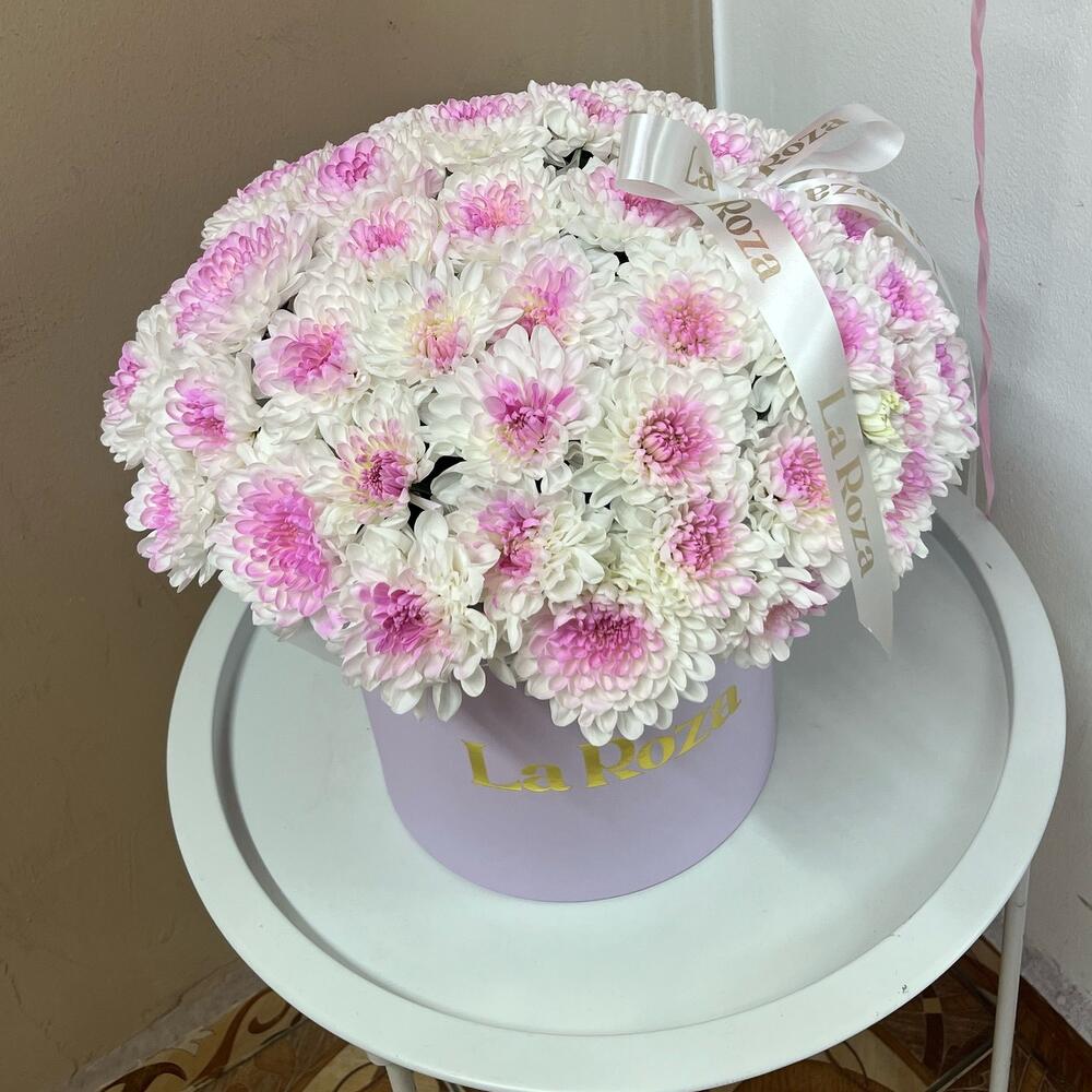 Коробка шляпная - 1 шт. хризантемы кустовые - 7 шт.