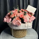 Композиция из кустовых роз премиум класса в плетеном кашпо S