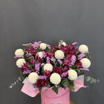 Альстромерия - 8 шт. Статица - 9 шт. Эвкалипт - 5 шт. Коробка - 1 шт. момоко - 12 шт.