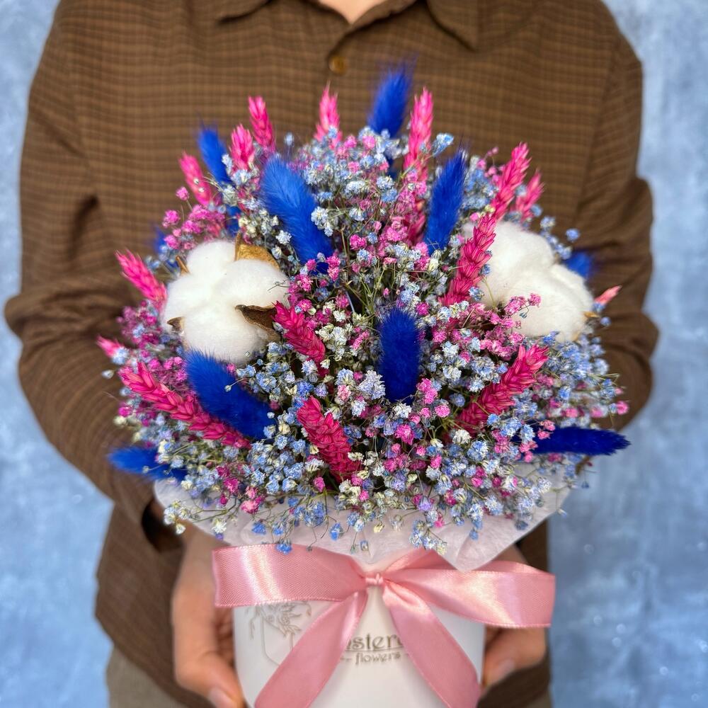 Шляпная коробочка с сухоцветами, нежная и одновременно яркая. Она станет изящным ненавязчивым украшением для любого интерьера. В подарок по любому поводу и без🌸