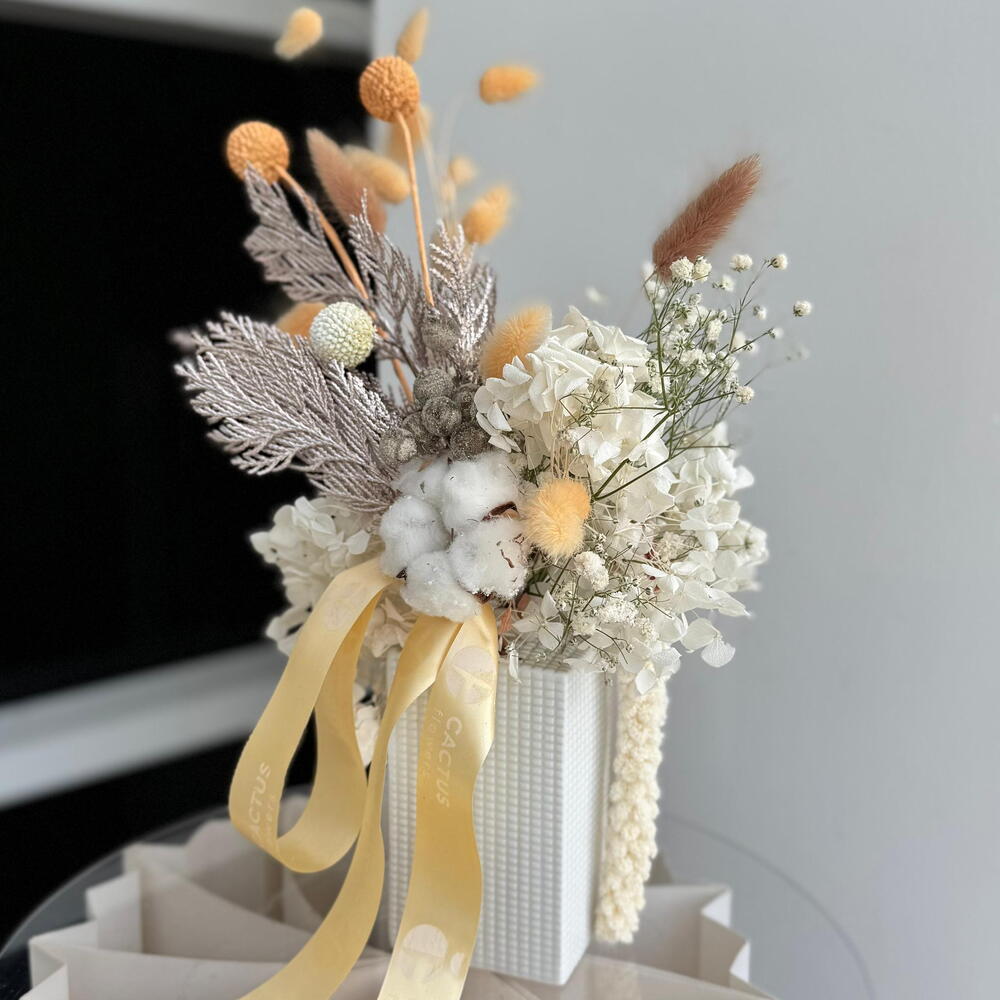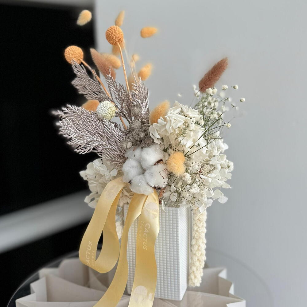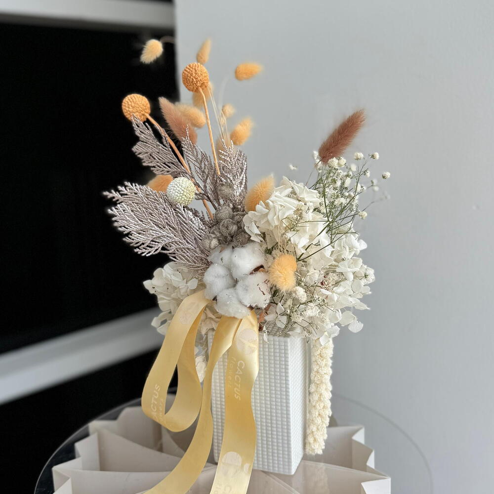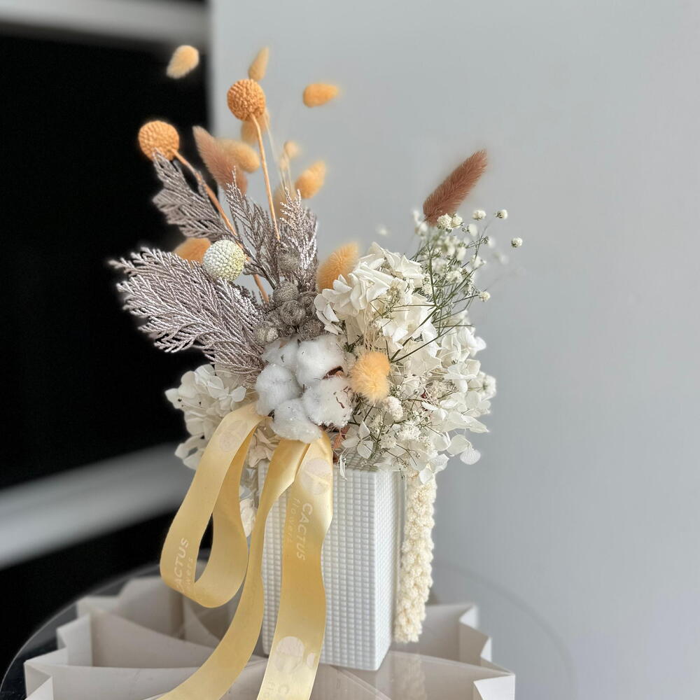 Гипсофила - 1 шт. Гортензия - 1 шт. Хлопок - 1 шт. Амарант - 1 шт. Лагурус - 12 шт.
