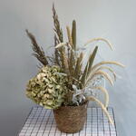Оазис флористический - 1 шт. Аспарагус заснеженый - 1 шт. Пшеница (сухоцвет) - 7 шт. гортензия сухоцвет - 1 шт. сухоцвет пампас кортадерия - 3 шт. Паникум Фоунтан - 9 шт. пампас сетария - 7 шт.