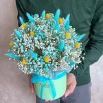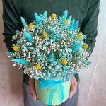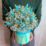 Гипсофила - 7 шт. Краспедия - 15 шт. Оазис - 1 шт. Лагурус - 17 шт. Коробка d15 - 1 шт.